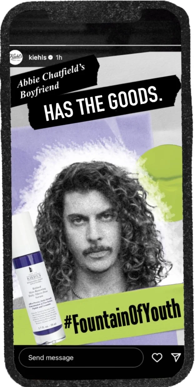 Kiehl’s have a reputation for pushing boundaries globally, but down under they’d been playing it safe. They needed a disruptive social campaign to shake things up for their Anti-Aging Retinol Serum. Enter an unlikely ambassador: Abbie Chatfield’s boyfriend, Keli Holiday.